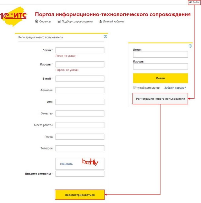 Для получения доступа к Порталу 1С:ИТС необходимо зарегистрироваться в системе.